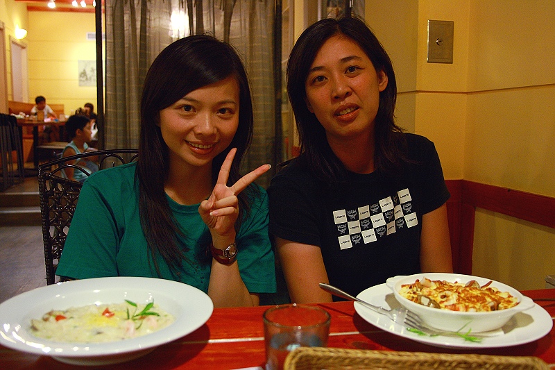 進去之後服務生問我們有沒有訂位,當然沒有呀!叫我們要等半小時左右,心想半小時太久了吧?後來另一個服務生剛好來說有人取消訂位,把那位置讓給我們。一般來說焗烤上菜的時間都要一段時間,沒想到這間還滿快的嘛!不過我是點綠茸培根燉飯,我覺得這個很好吃耶!而且也很香。另外就是現烤的鮮味雞塊,服務生很推薦,我們也點來吃,真的不錯吃呦!不過一定要趁熱吃才會香呢。